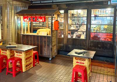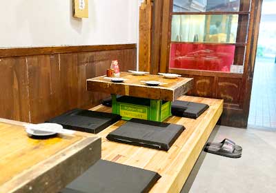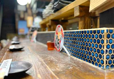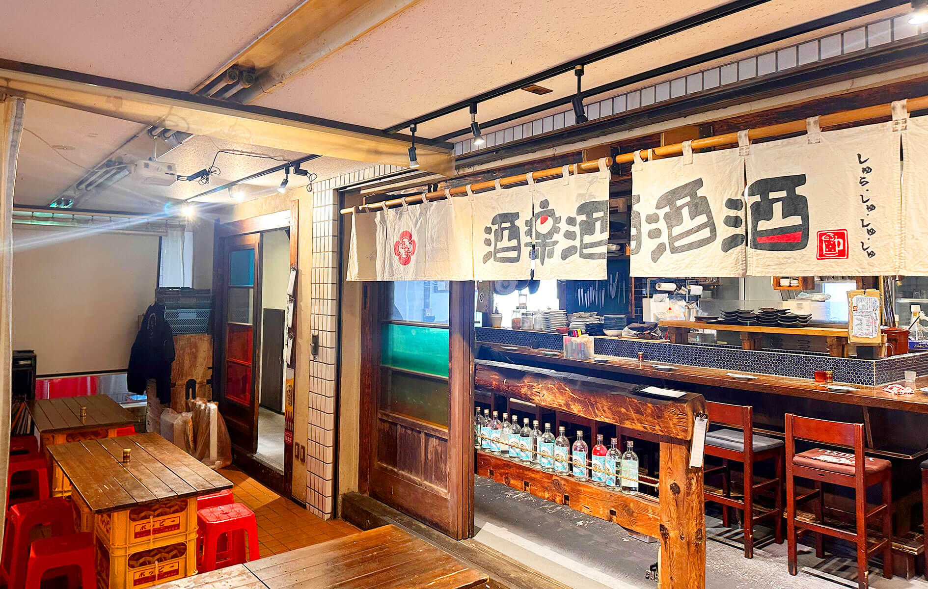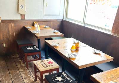 ビルのテナントを自分たちで改装した店内には小上がり席、カウンター席、テーブル席、テラス風席や秘密基地風など多彩な空間。